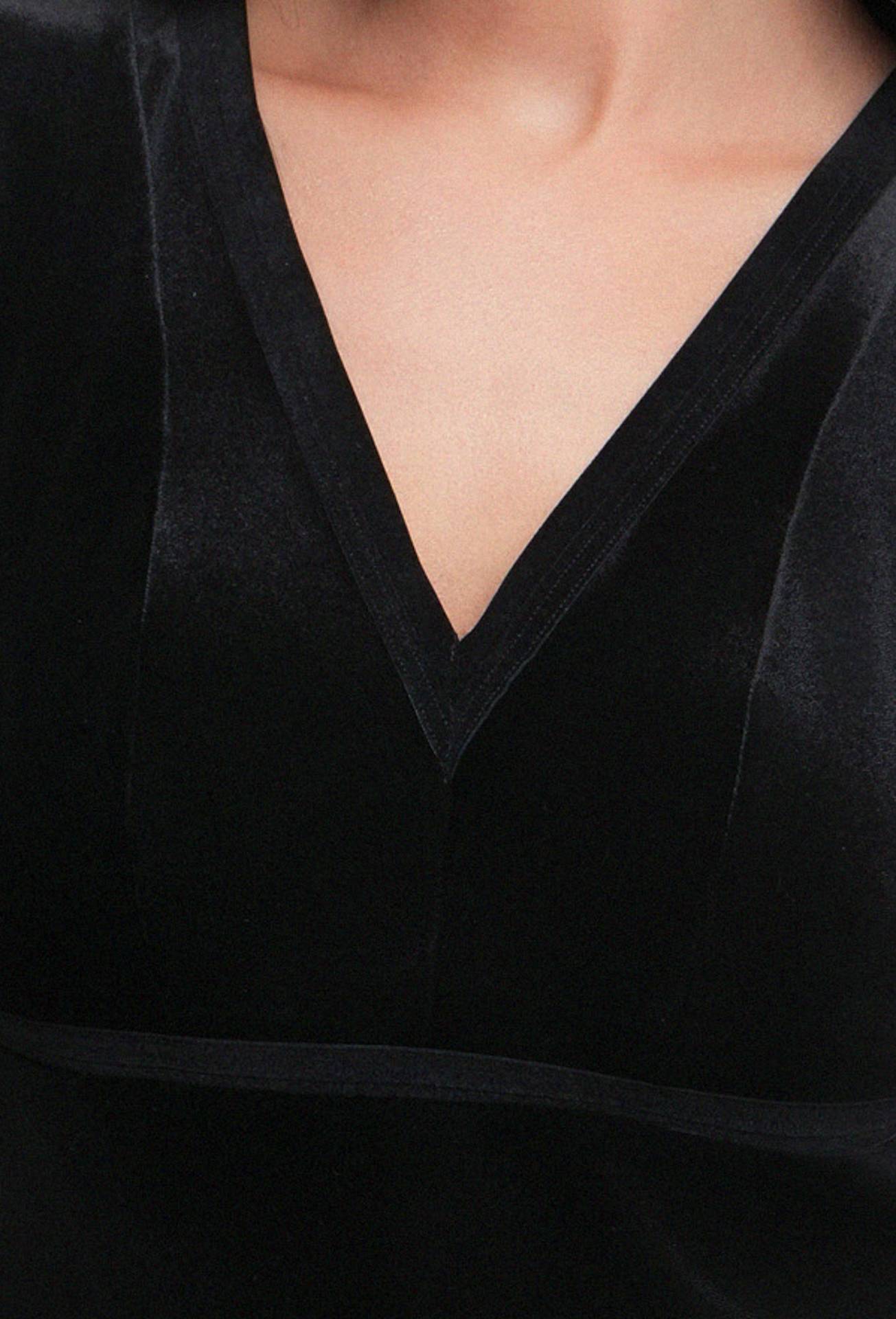 Emphasize your femininity in a unique bodysuit that combines luxurious velour with light, transparent sleeves. The soft, pleasant-to-the-touch fabric drapes beautifully over the figure, adding slenderness and subtle glamour. The transparent, puffed sleeves give the whole outfit a lightness and sophistication – perfect for evening outings, special occasions, or stylish photo shoots.