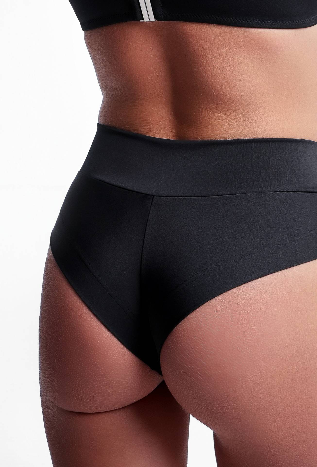 Wysoki stan zapewnia lekkie wysmuklenie brzucha oraz wygodę noszenia, a gładki, elastyczny materiał doskonale dopasowuje się do ciała. Klasyczna czerń sprawia, że dół stroju jest uniwersalny i łatwy do zestawienia z różnymi górami od bikini.
