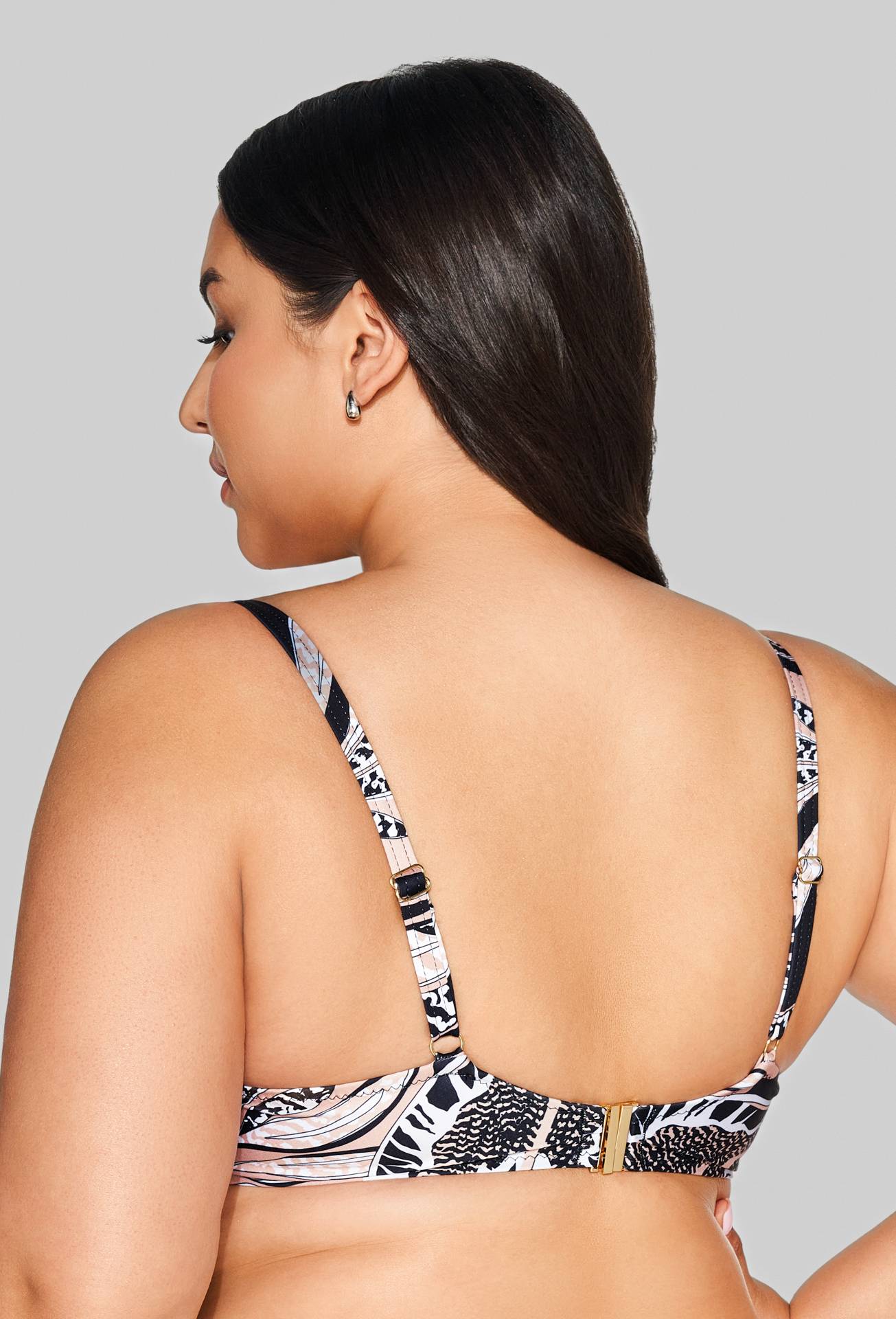 Klasyczny kolorystycznie wzór tworzy w tym komplecie ponadczasową elegancję. Połączenie czerni i koloru w stylu latte idealnie współgra z letnią opalenizną. Miseczki full cup równomiernie zbiorą i podtrzymają biust, dzięki czemu dekolt będzie bardziej uwydatniony, a Ty poczujesz się wyjątkowo. Regulowane ramiączka pozwolą na dopasowanie, a złote zapięcie doda szyku. Całości dopełnią figi SK 220/2 z regulacją po bokach. Unikalna konstrukcja podkreśli atuty sylwetki, ale także zapewni nieporównywalny komfort.